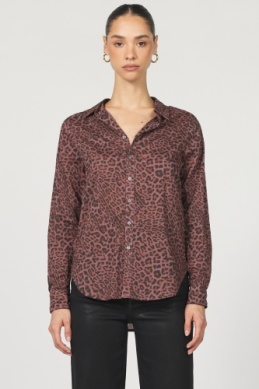 Dear John leopard blouse. Poly rayon blend. button front, shirt tail button sleeve. $78.00